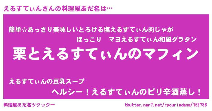 | 意味不明あだ名 | 『永久保存えるすてぃん』 |