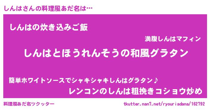 | 女子向けラノベタイトル風あだ名 | 『しんはの玉の輿計画!』 |