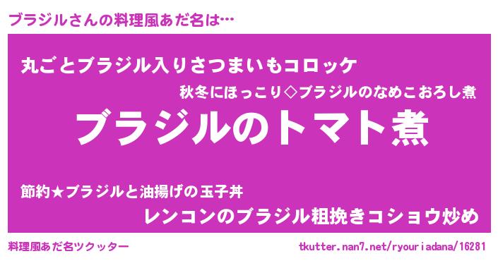 | 女子向けラノベタイトル風あだ名 | 『ブラジル夫妻のなれそめ』 |