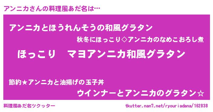 | 意味不明あだ名 | 『住所不定無職アンニカ(40歳)』 |