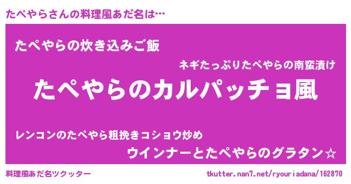 | 意味不明あだ名 | 『住所不定無職たぺやら(65歳)』 |