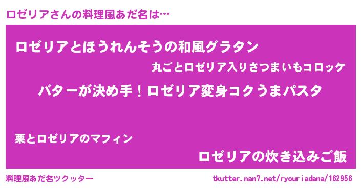 | ヘコむあだ名 | 『ロゼリア(笑)』『ロゼっ子』 |