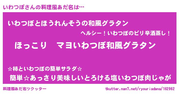 | 胡散臭い通販商品みたいなあだ名 | 『あなたにだけ特別に提供する100年もののヴィンテージワイン…その名も「いわつぼ」』 |