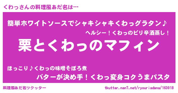 | ピコ太郎風あだ名 | 『クワ六郎』『クク太郎』『クコ史郎』 |