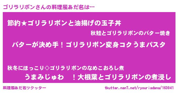 | ヒーロー風カッコイイあだ名 | 『愛の使者ゴリラリボン』『天弓騎士ゴリ』 |