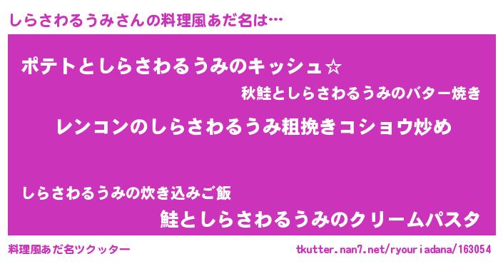 | 意味不明あだ名 | 『自称しらさわるうみ』 |