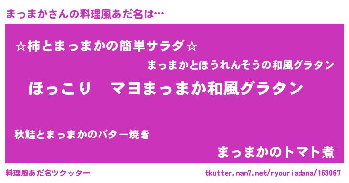 | ヘコむあだ名 | 『まっまか(笑)』『まっを』 |