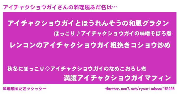 | 意味不明あだ名 | 『自称アイチャクショウガイ』 |