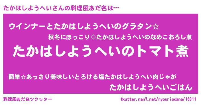 | ヒーロー風カッコイイあだ名 | 『正義の使者たかはしようへい』 |