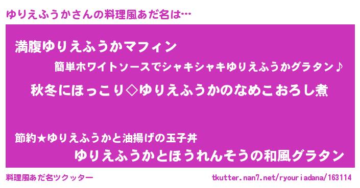 | ヘコむあだ名 | 『ゆりえふうか(遠い目)』『ゆりを』 |