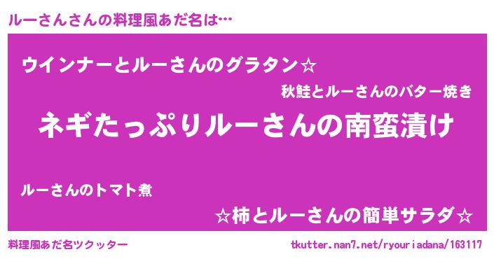 | ポケモン風あだ名 | 『ルーチュウ』『ルーサダネ』 |