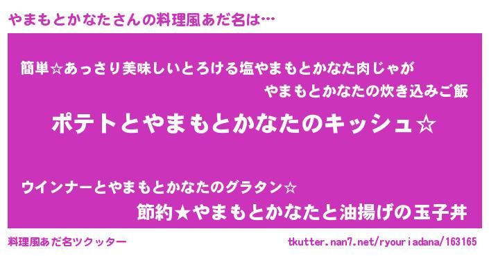 | 男性向けラノベタイトル風あだ名 | 『やまもとかなたの嫁は女の子じゃないと思った?』 |