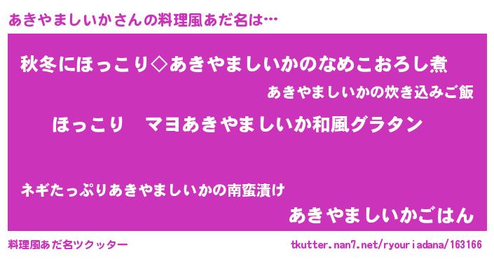 | 意味不明あだ名 | 『住所不定無職あきやましいか(40歳)』 |