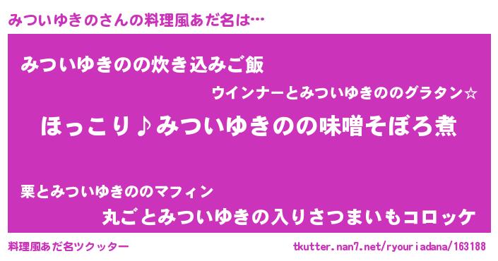 | ヘコむあだ名 | 『みつにゅー』『酢こんぶ』 |