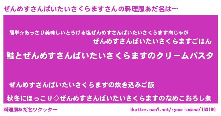 | 欧米人風あだ名 | 『ダニエルぜんめすさんばいたいさくらます』 |