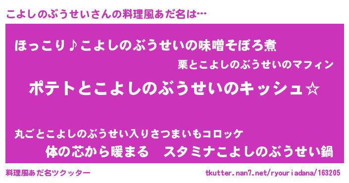 | 欧米人風あだ名 | 『ウサインこよしのぶうせい』 |