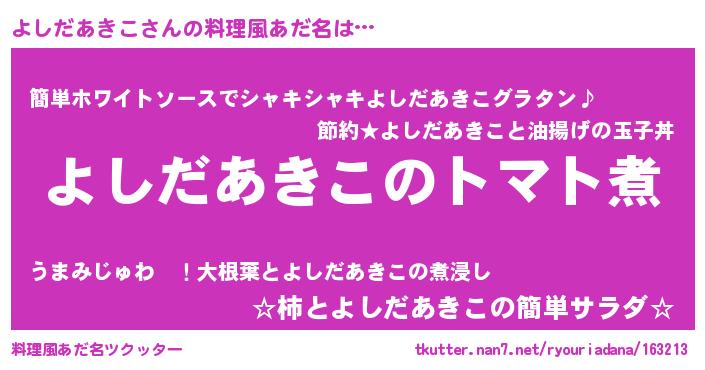 | ポケモン風あだ名 | 『ヨックウザ』『ヒヨシダアキコ』 |