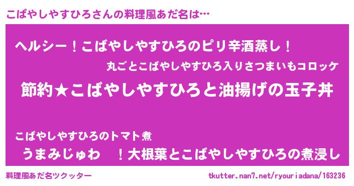 | ヘコむあだ名 | 『こばっふぃ~』『なまこ酢』 |