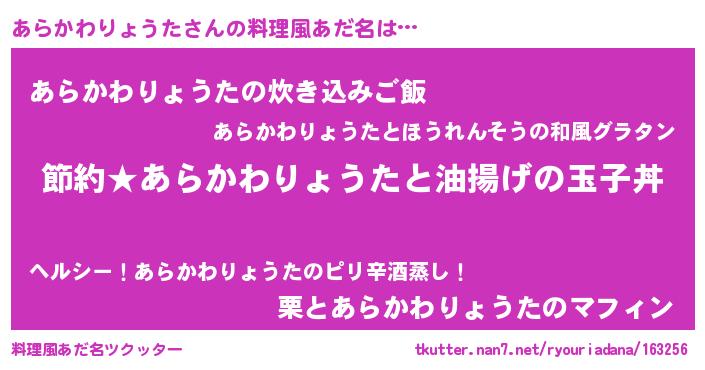 | 女子向けラノベタイトル風あだ名 | 『あらかわりょうた姫と円卓の騎士』 |