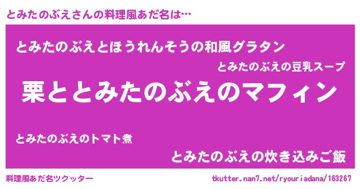 | 胡散臭い通販商品みたいなあだ名 | 『信頼と実績のサプリメント…その名も「とみたのぶえ」』 |
