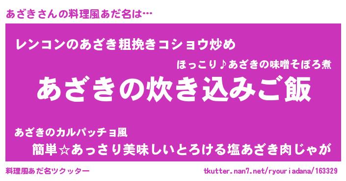 | 意味不明あだ名 | 『自称あざき』『永久保存あざき』 |