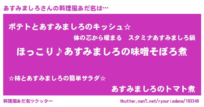 | 恥ずかしいあだ名 | 『プリティーあすみましろ』『あすっちょ』 |