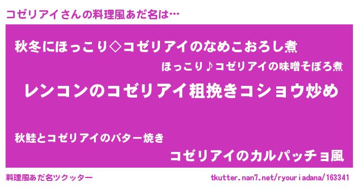 | 意味不明あだ名 | 『自称コゼリアイ』『ペロリンコゼリアイ』 |