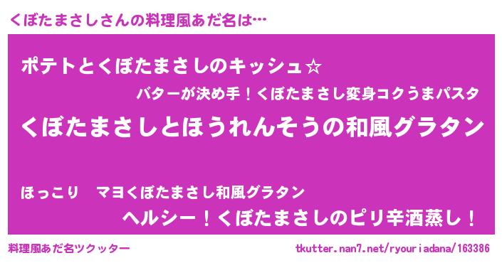 | 意味不明あだ名 | 『つくし科くぼたまさし属』 |