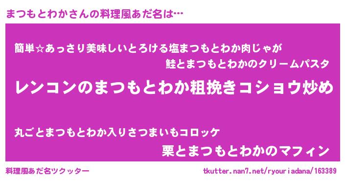 | ヘコむあだ名 | 『まつもとわか(小並感)』『まつふぇ~』 |