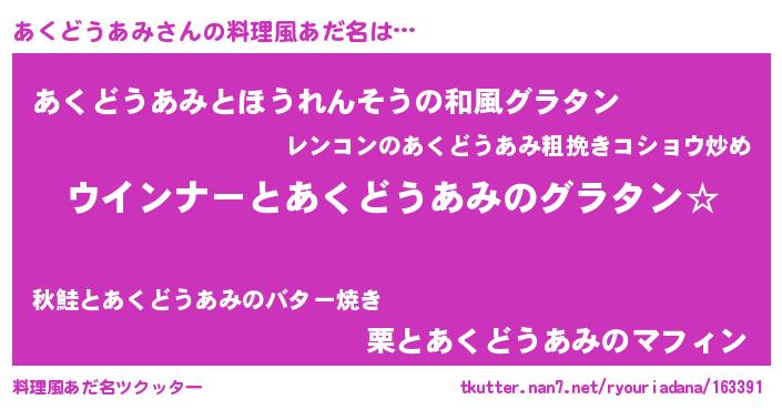 | 意味不明あだ名 | 『あくどうあみフォーエバー』 |