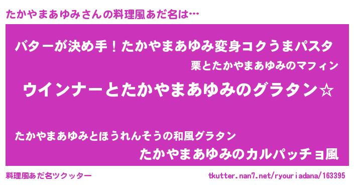 | 肩書あだ名 | 『たかやまあゆみ国家主席』 |