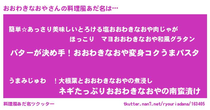 | ピコ太郎風あだ名 | 『オオ太郎』『ピコオ郎』『オコ一郎』 |