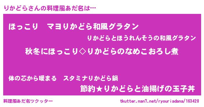 | 意味不明あだ名 | 『住所不定無職りかどら(84歳)』 |