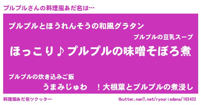 | ヒーロー風カッコイイあだ名 | 『スーパープルプル』『天弓騎士プル』 |