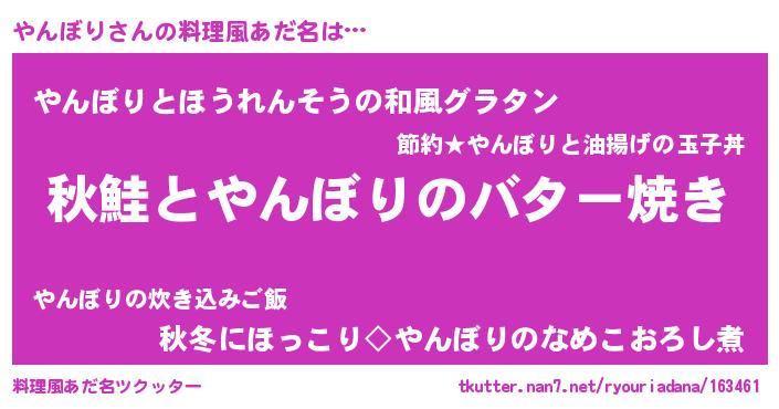 | ヘコむあだ名 | 『やんぼり(苦笑)』『やんっふぃ~』 |