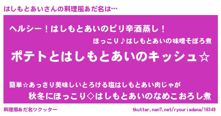 | 男性向けラノベタイトル風あだ名 | 『はしもとあいの嫁は女の子じゃないと思った?』 |