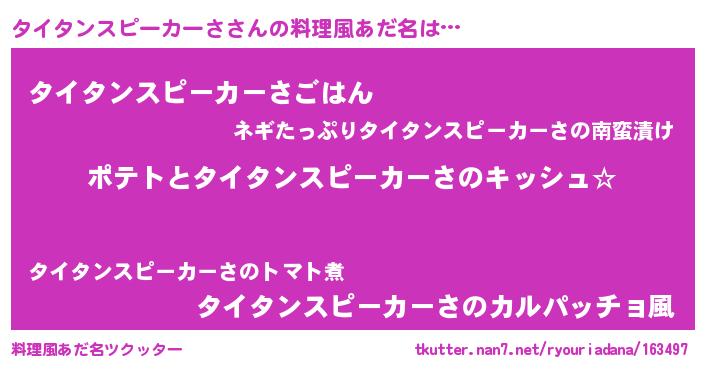 | 意味不明あだ名 | 『とにかく怪しいタイタンスピーカーさ』 |