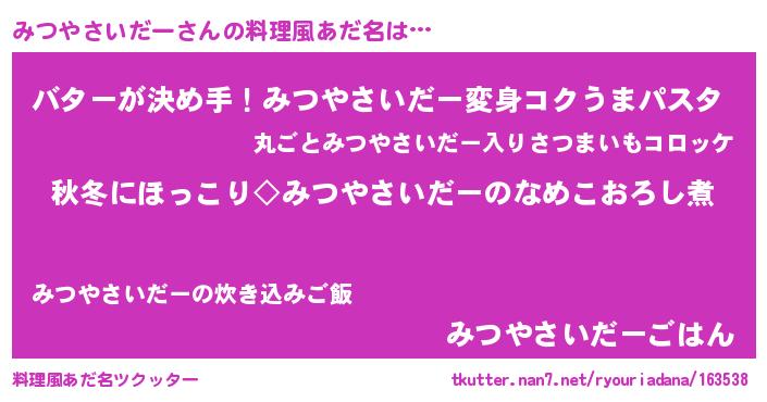 | 意味不明あだ名 | 『眠気覚ましガムみつやさいだー味』 |
