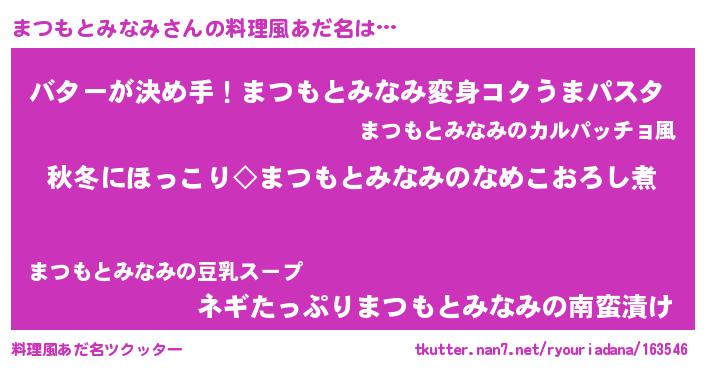 | ヘコむあだ名 | 『まつふぇ~』『まつっ子』 |