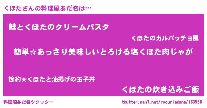 | 意味不明あだ名 | 『永久保存くほた』『ペロリンくほた』 |