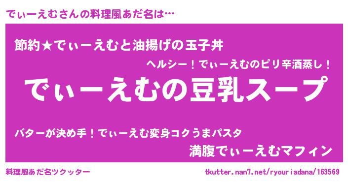 | ヘコむあだ名 | 『でぃぷりん』『でぃもー』 |