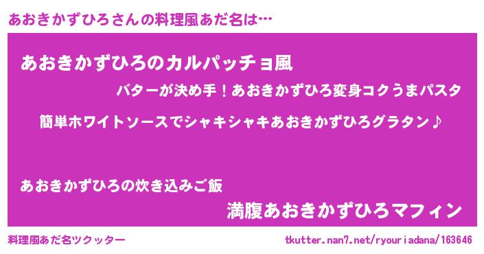 | ヘコむあだ名 | 『あおっぺ』『あおきかずひろ(爆)』 |