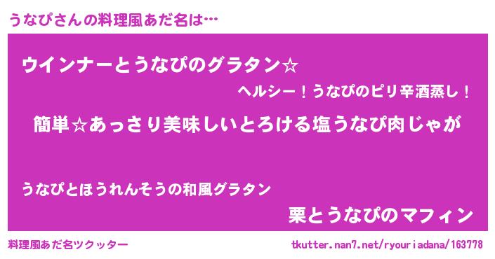 | ヘコむあだ名 | 『うなぴ(笑)』『なまこ酢』 |