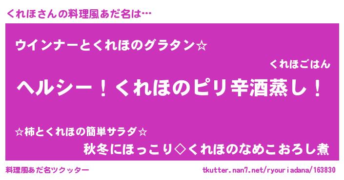 | 男性向けラノベタイトル風あだ名 | 『Re:くれほから始める異世界生活』 |
