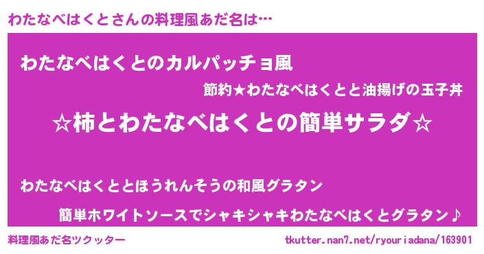 | ヘコむあだ名 | 『わたお』『わたにゅー』『豆乳』 |