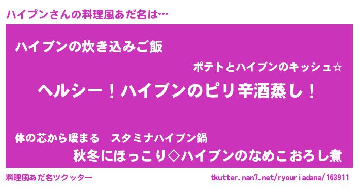 | ヒーロー風カッコイイあだ名 | 『究極戦士ハイブン』『幻影騎士ハイ』 |