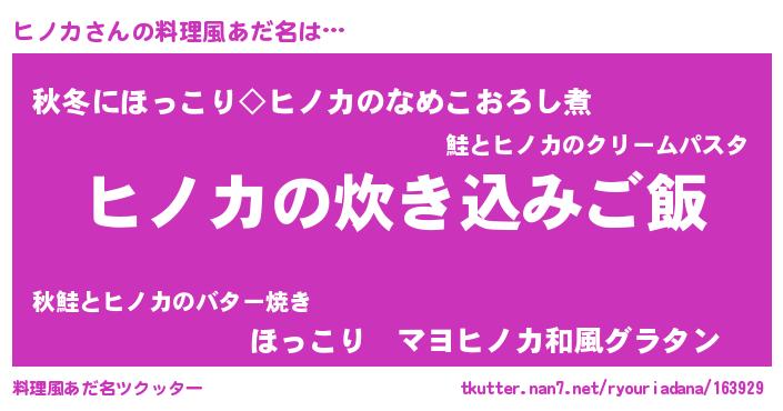 | ヘコむあだ名 | 『ヒノカ(爆)』『ヒノにー』 |