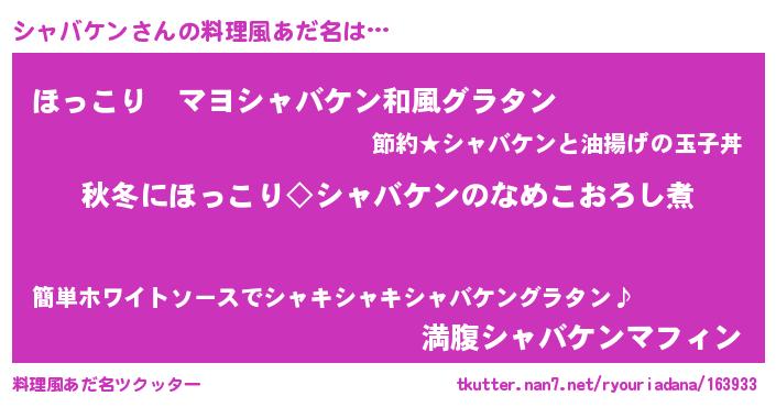 | ヘコむあだ名 | 『シャバケン(苦笑)』『シャふぇ~』 |