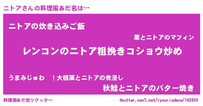 | 意味不明あだ名 | 『自称ニトア』『永久保存ニトア』 |