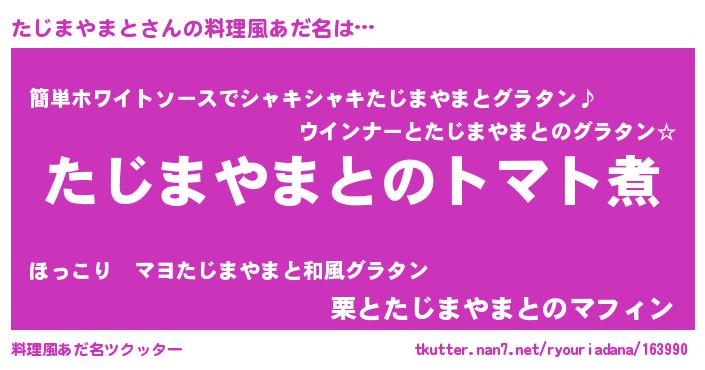 | 男性向けラノベタイトル風あだ名 | 『おまえをオタクにしてやるから、俺をたじまやまとにしてくれ! 』 |
